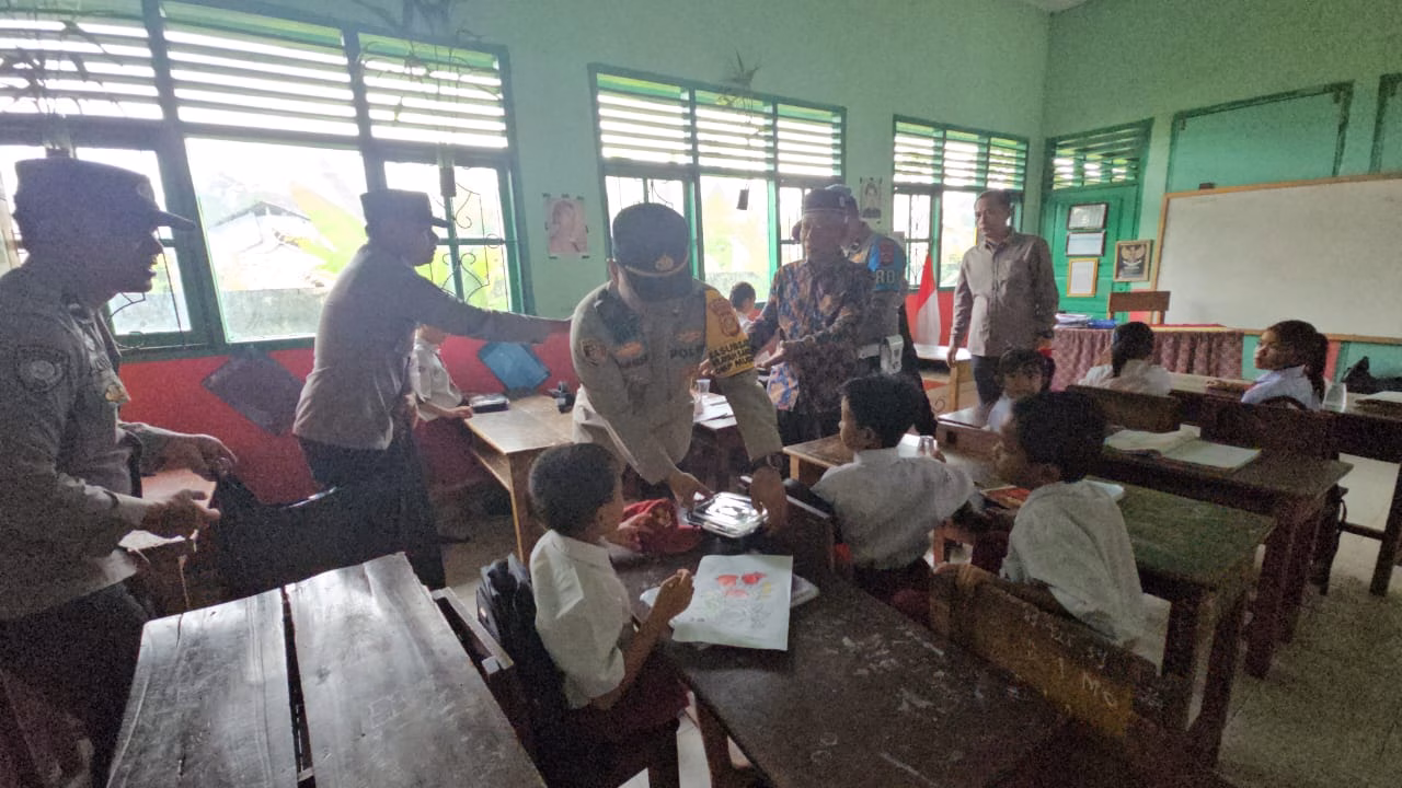 Kali ini, Kapolsek Sanga Desa Iptu Joharmen bersama personil langsung mendatangi SD N 2 Ngulak, untuk memberikan ratusan paket makan sehat dan bergizi ke siswa.