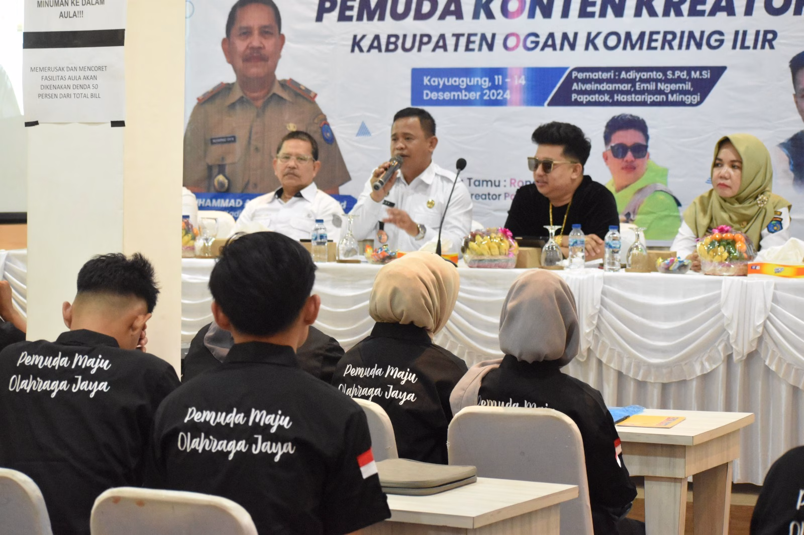 OKI, KRSUMSEL.COM — Pemerintah Kabupaten Ogan Komering Ilir (OKI) melalui Dinas Pemuda dan Olahraga bekali pemuda dengan keterampilan dalam dunia digital, terutama dalam pembuatan konten kreatif dan menjadi MC yang profesional serta edukasi bahaya Judi Online.