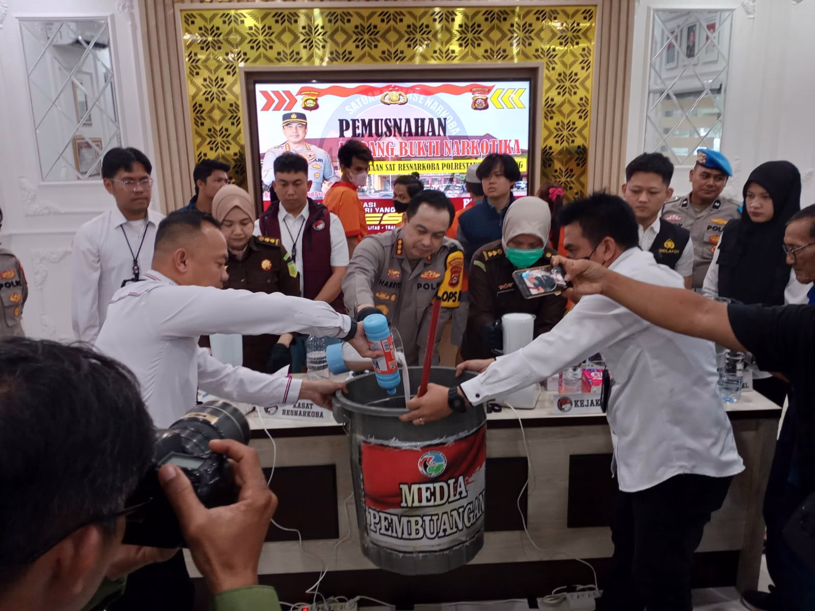 Kapolrestabes Palembang Kombes Pol Harryo Sugihhartono didampingi Kasat Narkoba Kompol Faisal Manalu mengatakan, pemusnahan ini dilakukan untuk menjaga keutuhan serta keamanan barang bukti dari oknum-oknum yang tidak bertanggung jawab