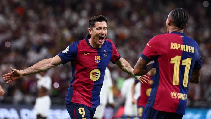 Barcelona bangkit untuk menutup babak pertama dengan keunggulan 4-1 lewat Lamine Yamal, Robert Lewandowski, Raphinha, dan Alejandro Balde.