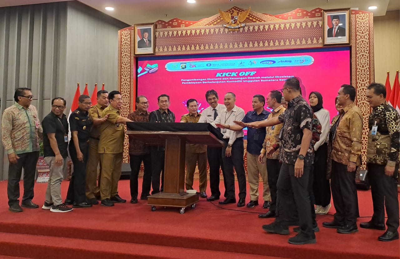 KRSumsel.com, Palembang – OJK Gelar Kick Off Pengembangan Ekonomi dan Keuangan Daerah melalui Ekosistim Pembiayaan Berkelanjutan Komuniti Unggulan Sumatera Selatan yang berlangsung di Ballroom Kantor OJK Sumatera Selatan yang dihadiri oleh Pj. Gubernur Sumatera Selatan, Elen Setiadi, S.H., M.S.E, Kepala Kantor OJK Prov Sumsel, Arifin Susanto, Direktorat Jenderal Bea dan Cukai Sumbagtim, Triyanto, Balai Karantina Hewan, Ikan, dan Tumbuhan Sumsel: Ir. Kostan Manalu M.M, PT Pelabuhan Indonesia (Pelindo) Region 2, Darmawi dan PT Agri Ekspor Indonesia, Novia Anggita.