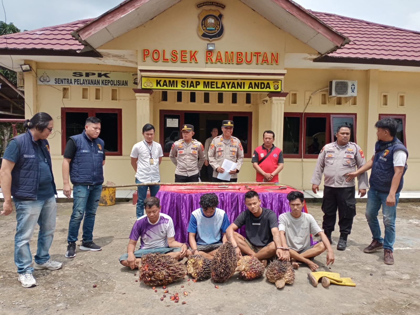 “Ya berawalnya kita mendapatkan laporan dari salah satu yang juga merupakan Kades. Yang mengatakan adanya aksi pencurian buah sawit, “Ungkap Kapolsek Rambutan, AKP Ledi didampingi Kanit Res Iptu Khadafi, Selasa (11/2/2025).