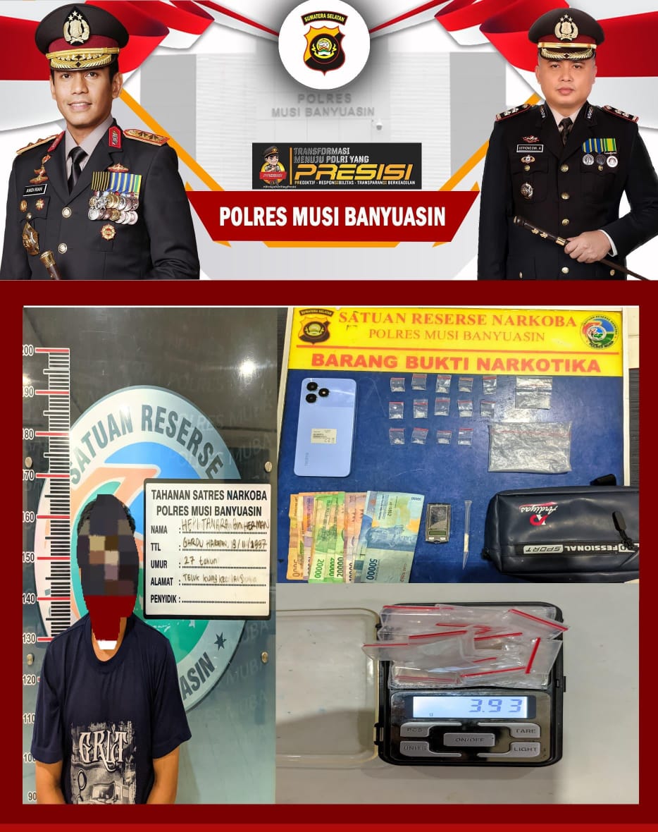 KRSUMSEL.COM, Muba – Karena tergiur dengan mendapatkan uang yang cepat dan banyak. Membuat HT (27) warga Dusun III, Desa Teluk Kijing I, Kecamatan Lais, Kabupaten Muba nekat mengedarkan narkoba jenis sabu-sabu.