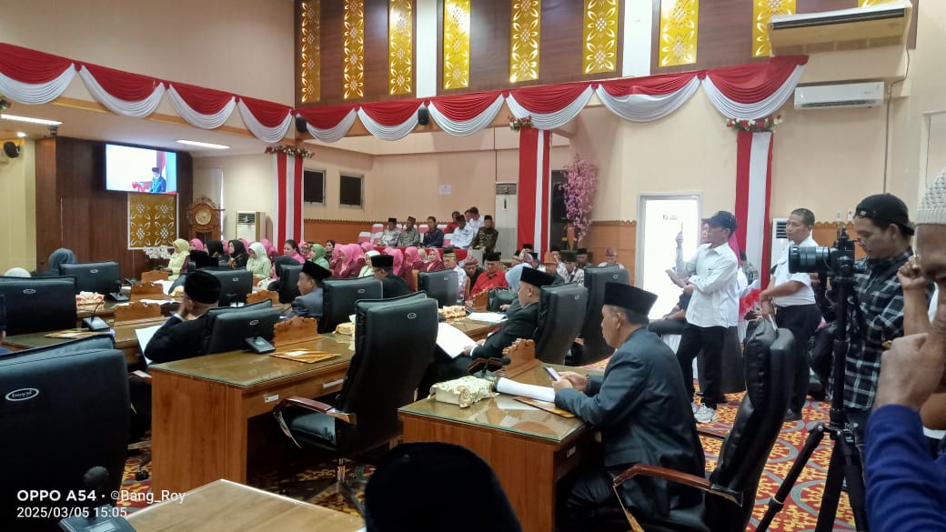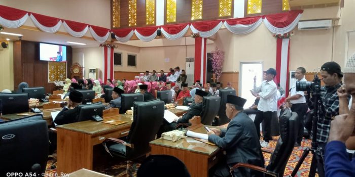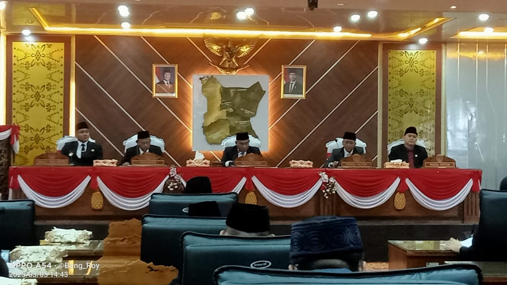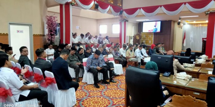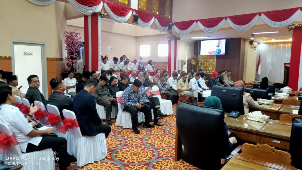 Sidang paripurna itu dibuka Ketua DPRD,H Deni Victoria SH MSi didampingi wakil I, Aryono dan Wakil ll,Ir Dipe Anom disaksikan Forkopimda.Juga dihadiri Anggota DPRD,Kepala OPD,Parpol,Camat,Lurah/Kades serta tamu dan undangan.