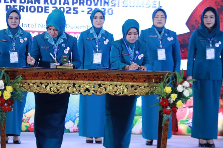 BANYUASIN,KRSumsel.com — Ketua TP PKK Kabupaten Banyuasin, Nabila Askolani Putri resmi dilantik menjadi Ketua TP PKK Banyuasin oleh Ketua TP PKK Provinsi Sumatera Selatan, Febrita Lustia Herman Deru di Ballroom Novotel Palembang, Kamis (6/03/2025) pada pelantikan Ketua Tim Penggerak PKK, Ketua Tim Pembina Posyandu dan Ketua Dekranasda Kabupaten dan Kota Provinsi Sumatera Selatan periode 2025-2030.