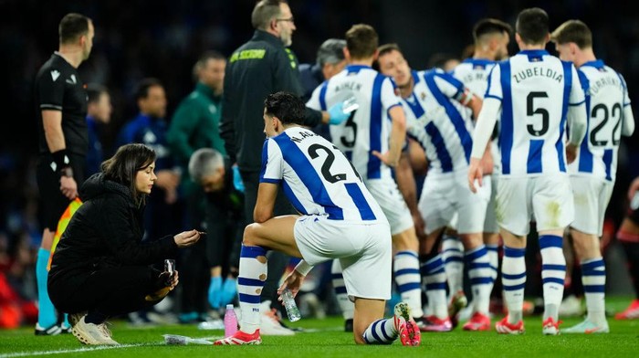 San Sebastian, KRSUMSEL.COM – Real Sociedad vs Manchester United dihentikan sejenak pada menit ke-20. Hal ini dilakukan untuk memberi waktu Nayef Aguerd dan Noussair Mazraoui berbuka puasa.