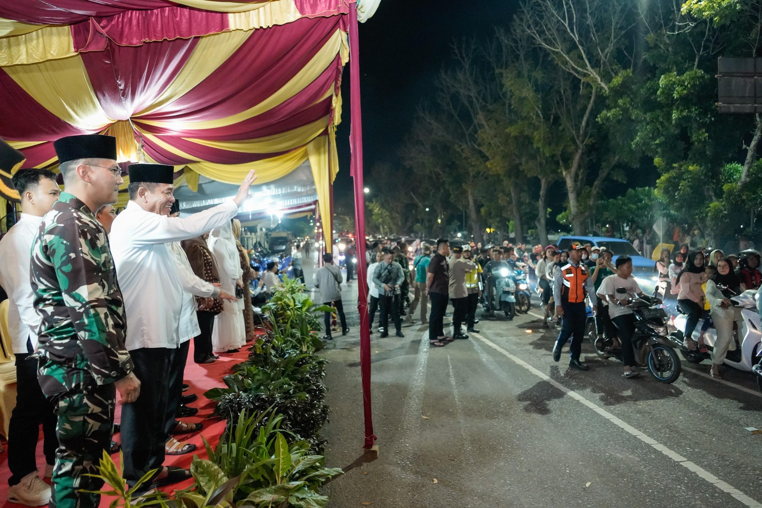 Ribuan masyarakat berkumpul, menandakan sebuah kemeriahan pawai takbir. Tidak hanya masyarakat namun, juga ditandai ratusan deretan kendaraan hias berparade satu per satu, menambah semarak perayaan kemenangan umat Muslim setelah berpuasa satu bulan penuh.