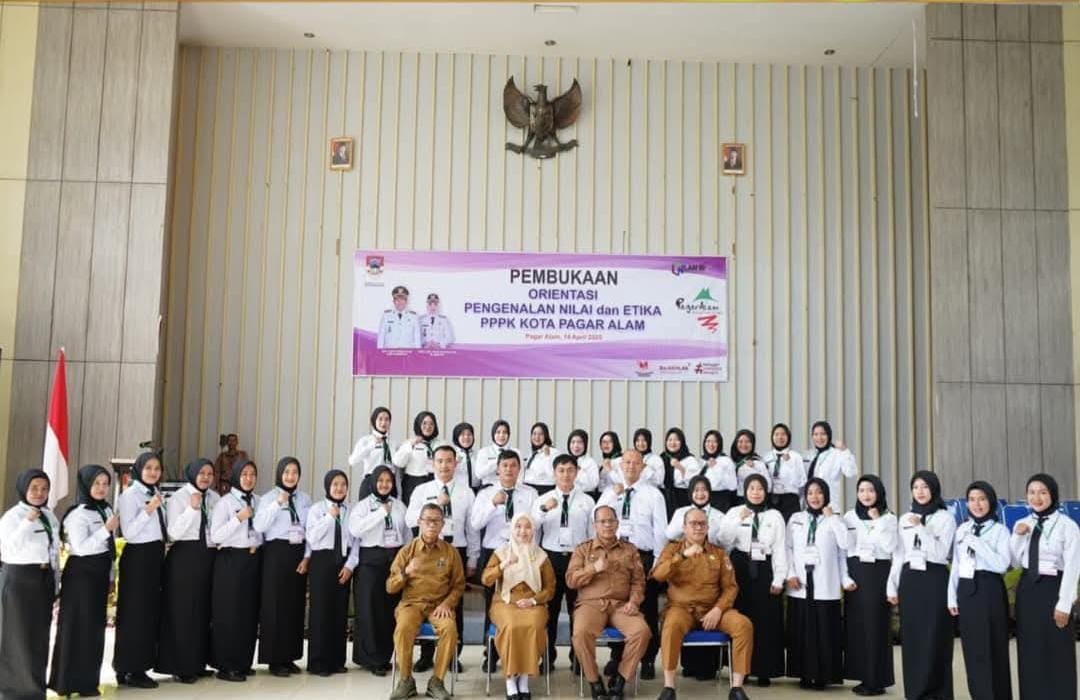 Wakil Walikota Pagaralam, Hj. Bertha membuka secara Langsung Kegiatan Orientasi Pengenalan Nilai dan Etika kepada Pegawai Pemerintah dengan Perjanjian Kontrakan (PPPK) Kota Pagaralam, bertempat di Gedung Serbaguna SD Negeri 74, Gunung Gare, Kota Pagaralam, Senin (14/04/2025).