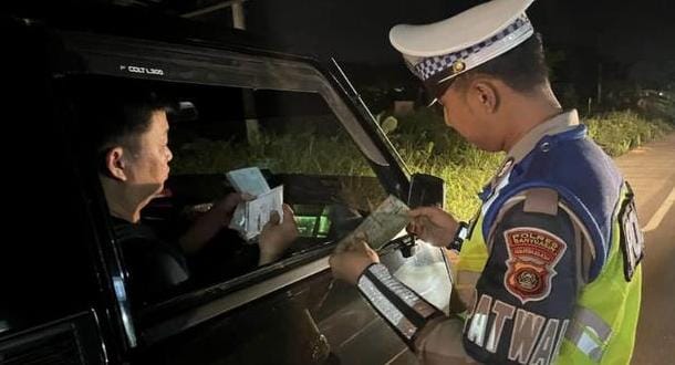 yang melintas di Jalintim Gerbang Perkantoran Km 42 Kabupaten Banyuasin, dan melakukan pemeriksaan surat menyurat kendaraan R2 dan R4