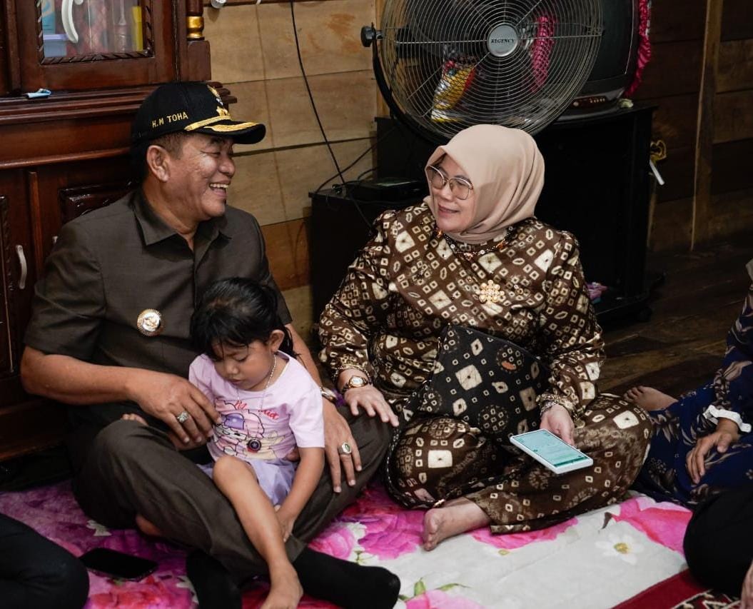 KRSUMSEL.COM, Muba – Sebuah momen haru tersaji. Saat Bupati Muba H. M. Toha dan Ketua TP PKK Muba Hj. Patimah Toha berkunjung ke rumah Afifah, bocah berusia 4,5 tahun yang tengah berjuang melawan penyakit jantung bocor pada, Rabu (30/4).