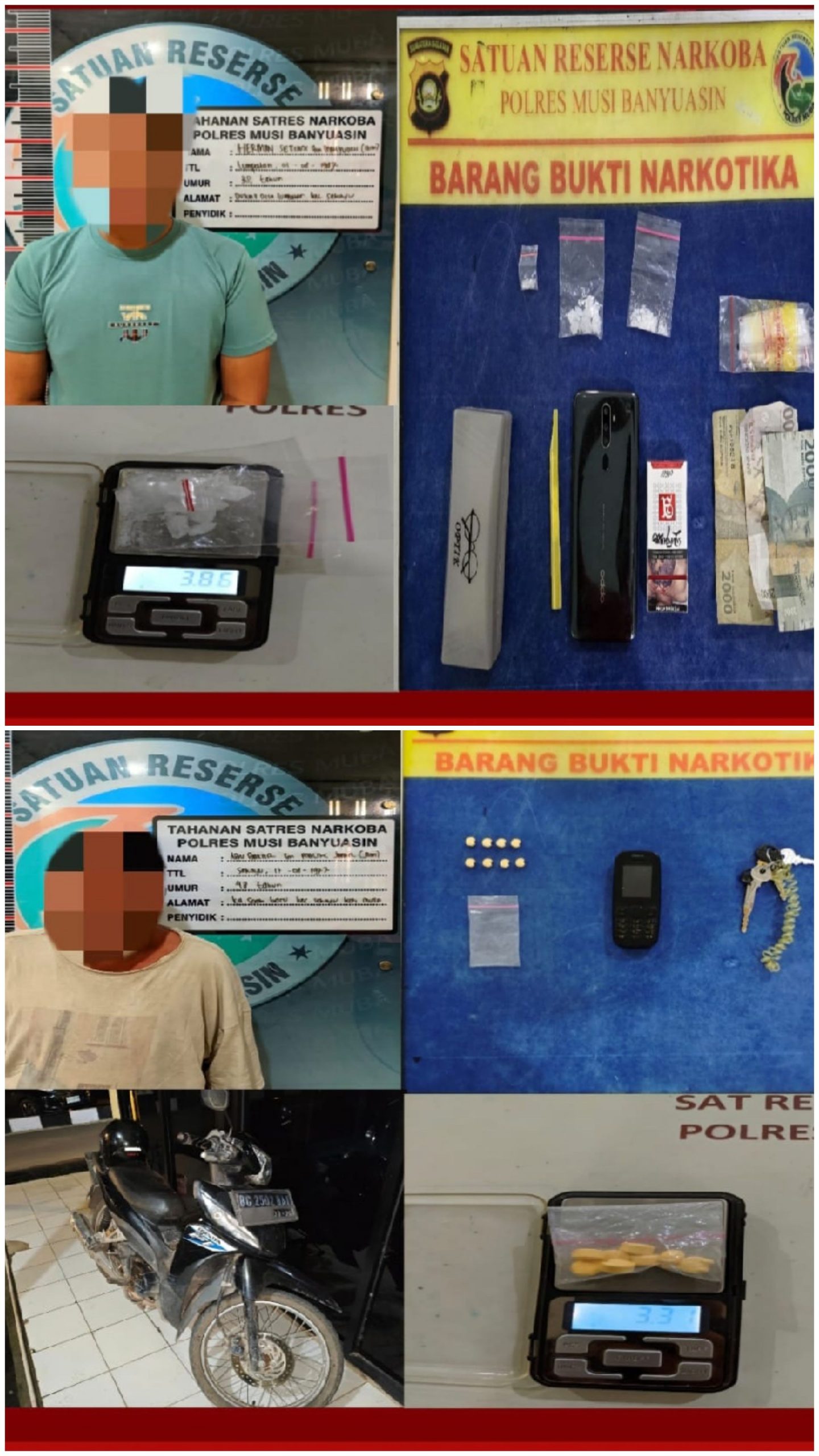 “Alhasil, pada Kamis, (15/5) sekira pukul 10:40 WIB. Kita menangkap pria berinisial HS di wilayah Desa Lumpatan, Kecamatan Sekayu. Dari hasil penggeledahan, ditemukan sebanyak 3 plastik klip bening berisikan narkotika jenis sabu dengan berat bruto 3,86, ” kata Budi, Sabtu (17/5).