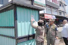 Dalam kegiatan tersebut lanjut Yusri, petugas menertibkan satu unit gerobak warung kelontong dan satu unit gerobak bubur ayam yang telah lama terbengkalai. Sebanyak sembilan stiker larangan ditempelkan pada gerobak kontainer dan warung kelontong yang melanggar ketentuan.