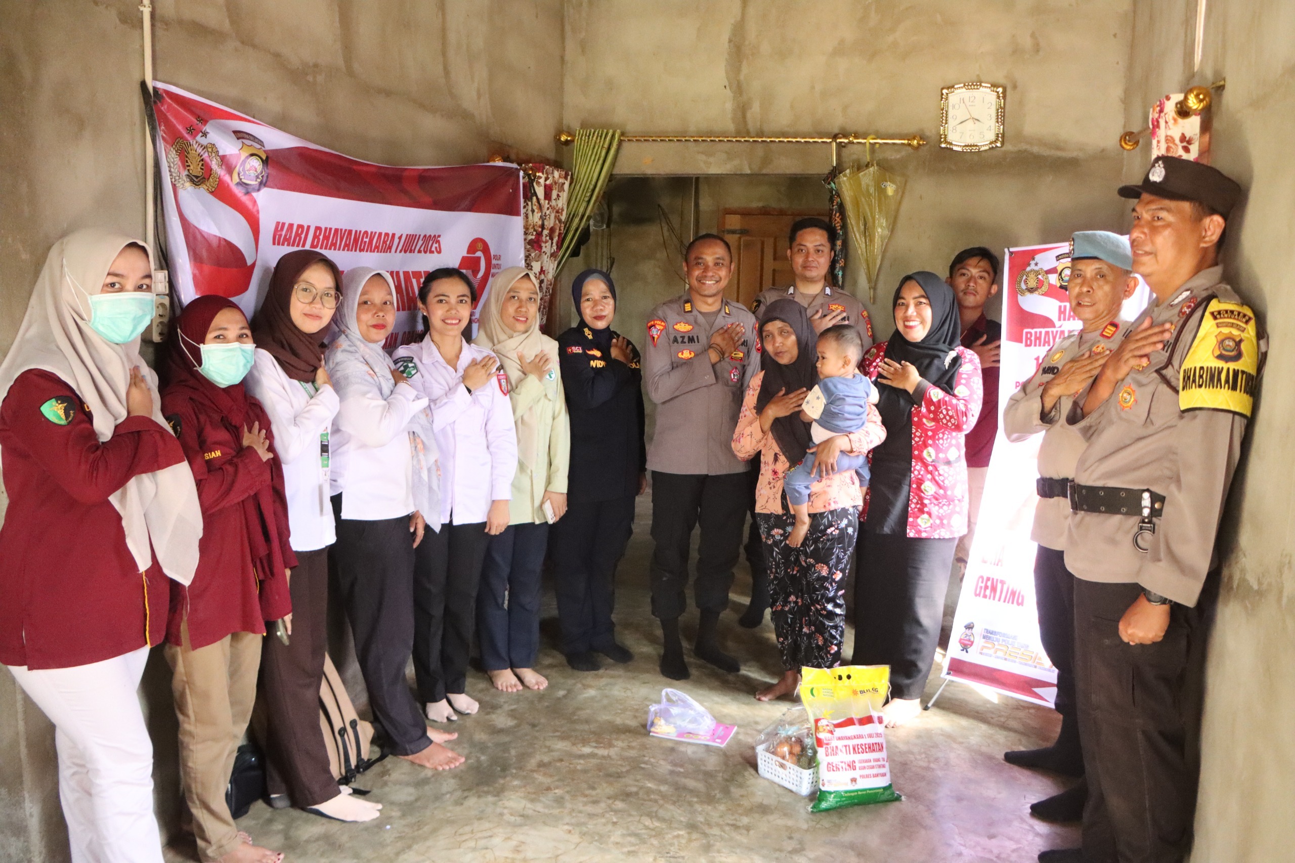 Dikesempatan Itu Kasi dokkes Polres Banyuasin juga mendatangi rumah warga di Talang Kebang Kelurahan Pangkalan Balai yakni di rumah Amirudin dan Kurnia yang anaknya beresiko stunting, kemudian dilanjutkan di Kelurahan Satrio.