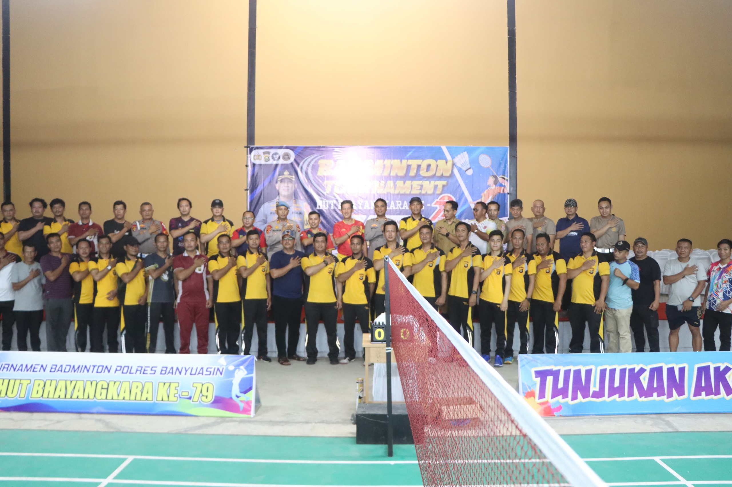BANYUASIN, KRSumsel.com – Memeriahkan Hari Bhayangkara ke-79, Polres Banyuasin menggelar turnamen bulutangkis terbuka di Gedung Olahraga (GOR) Pangkalan Balai, Kabupaten Banyuasin. Rabu, (18/06/25)Acara yang dibuka secara resmi oleh Wakapolres Banyuasin Kompol Adriansyah SE SIK ini turut mengundang Forkopimda Kabupaten Banyuasin serta masyarakat umum untuk berpartisipasi.