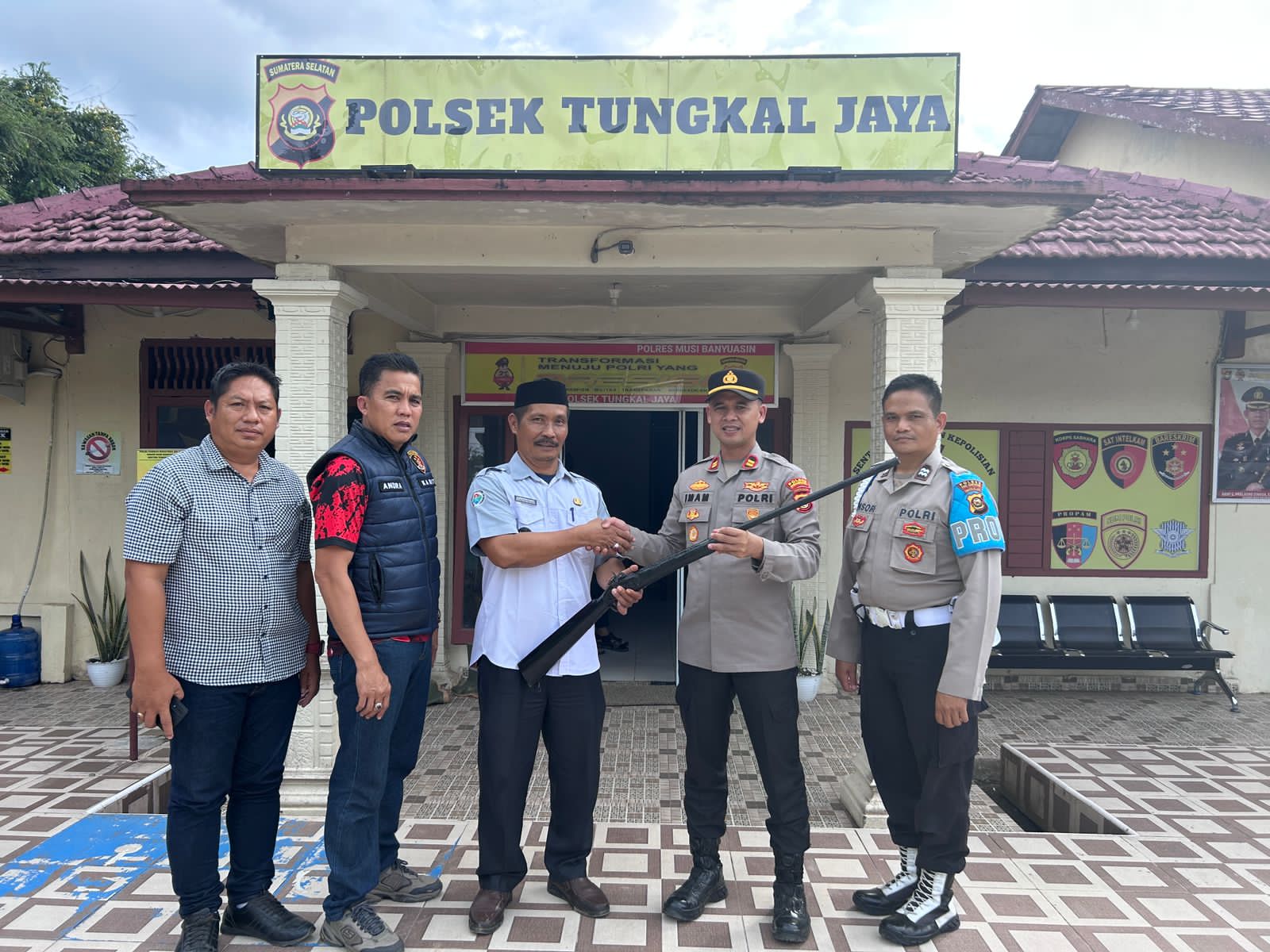 Terpantau, Rabu (18/6), Polsek Bayung Lencir dan Polsek Tungkal Jaya menerima penyerahan senjata api rakitan, dari unsur pemerintahan desa yang menunjukkan kesadaran dan partisipasi aktif, menjaga situasi keamanan dan ketertiban masyarakat (harkamtibmas).