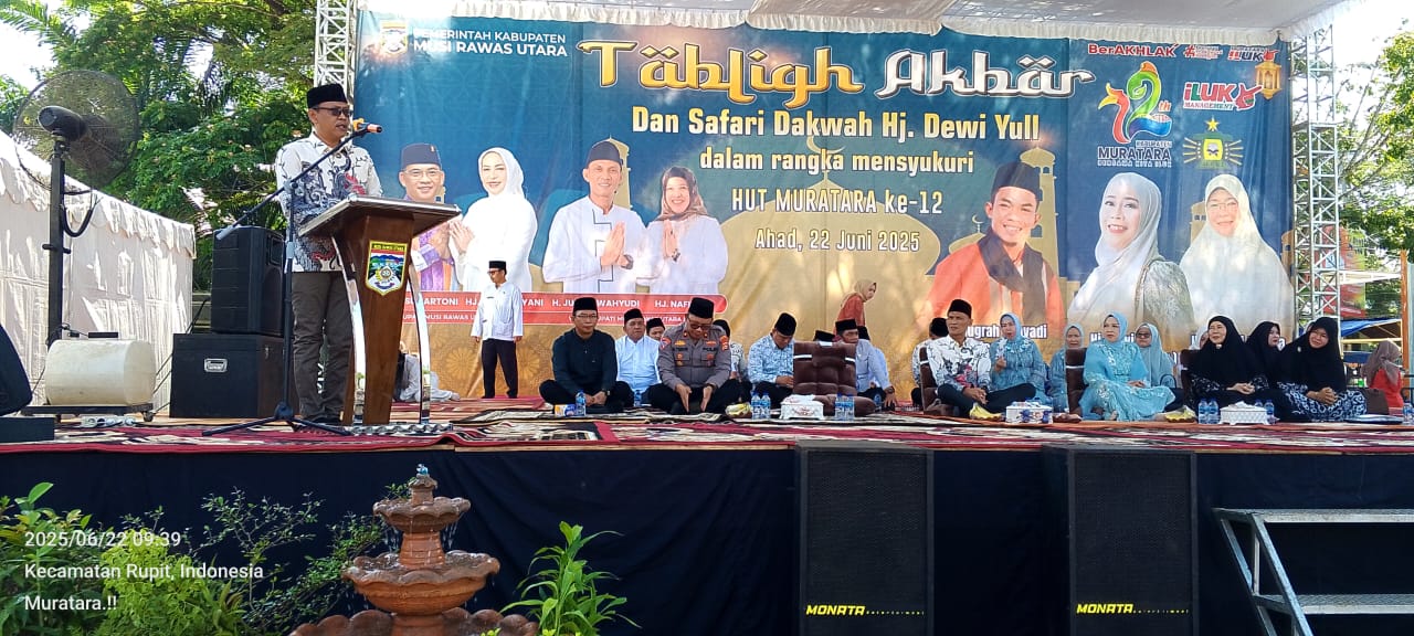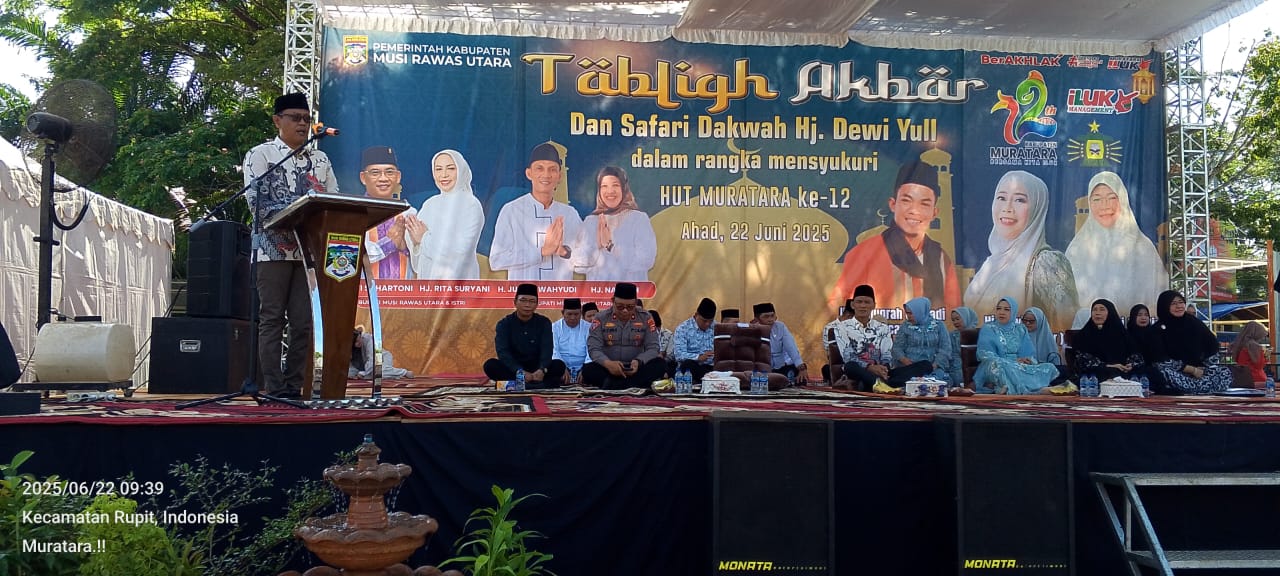 Ia menegaskan bahwa Tabligh Akbar bukan sekadar kegiatan seremonial, melainkan sebagai momen spiritual untuk memperkuat keimanan dan semangat membangun Muratara.