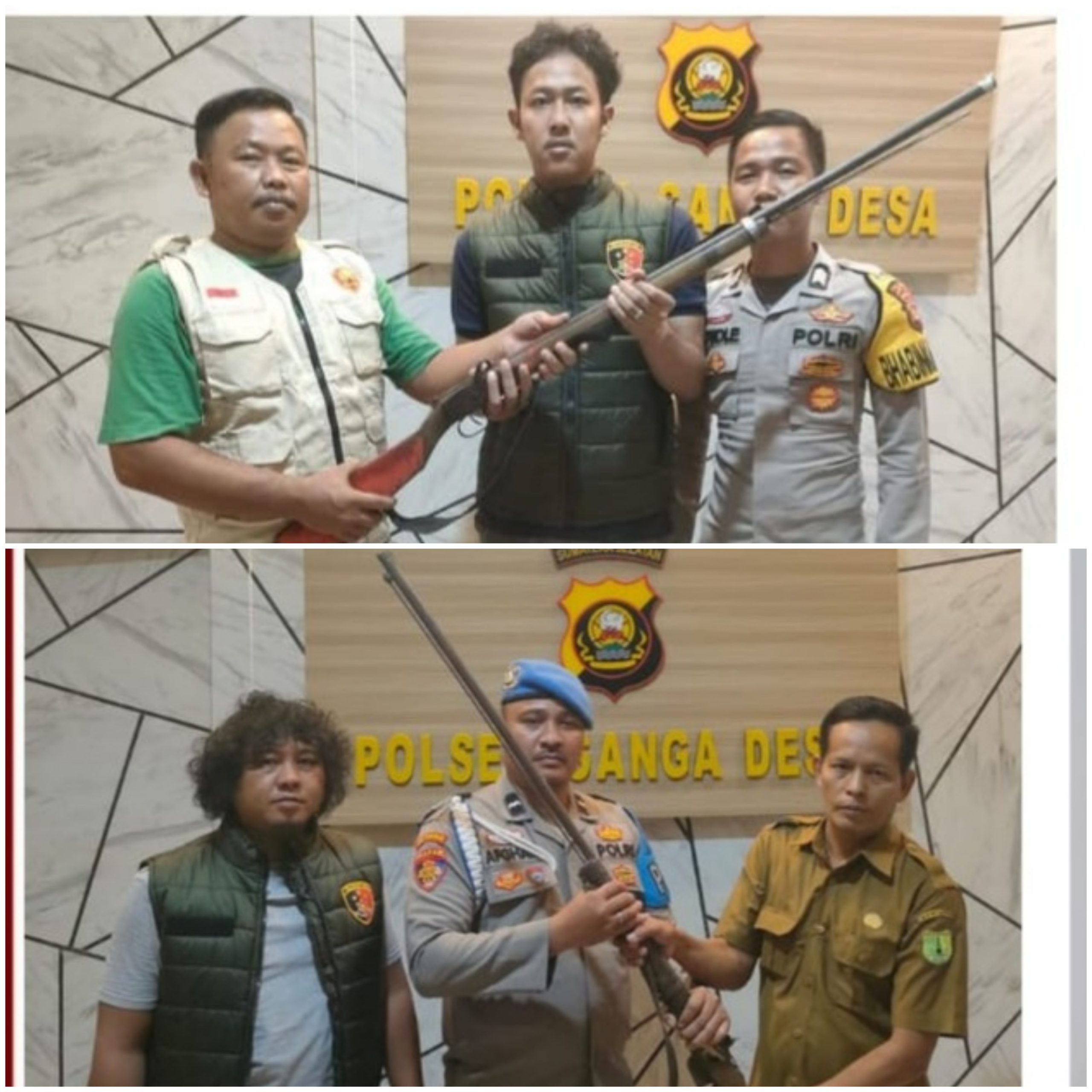Penyerahan pertama dilakukan oleh Lurah Ngulak I Kecamatan Sanga Desa pada pukul 18:00 WIB di Mapolsek Sanga Desa. Barang bukti yang diserahkan berupa 1 (satu) pucuk senjata api rakitan laras panjang dengan gagang berwarna coklat, 1 gumpal sabut kelapa