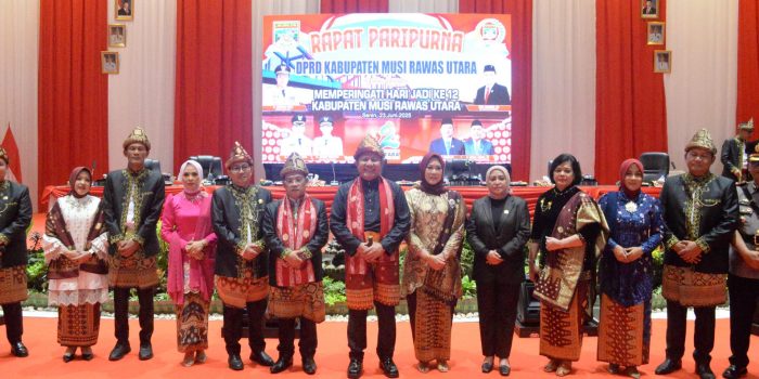 Muratara, KRsumsel.com — Pemerintah Kabupaten Musi Rawas Utara (Muratara) terus menunjukkan komitmennya dalam membangun daerah yang lebih maju dan sejahtera. Hal ini terlihat dari kehadiran langsung Bupati H. Devi Suhartoni dan Wakil Bupati H. Junius Wahyudi dalam Sidang Paripurna Istimewa DPRD Muratara dalam rangka perayaan Hari Ulang Tahun (HUT) Kabupaten Muratara ke-12, Senin (23/6/2025).