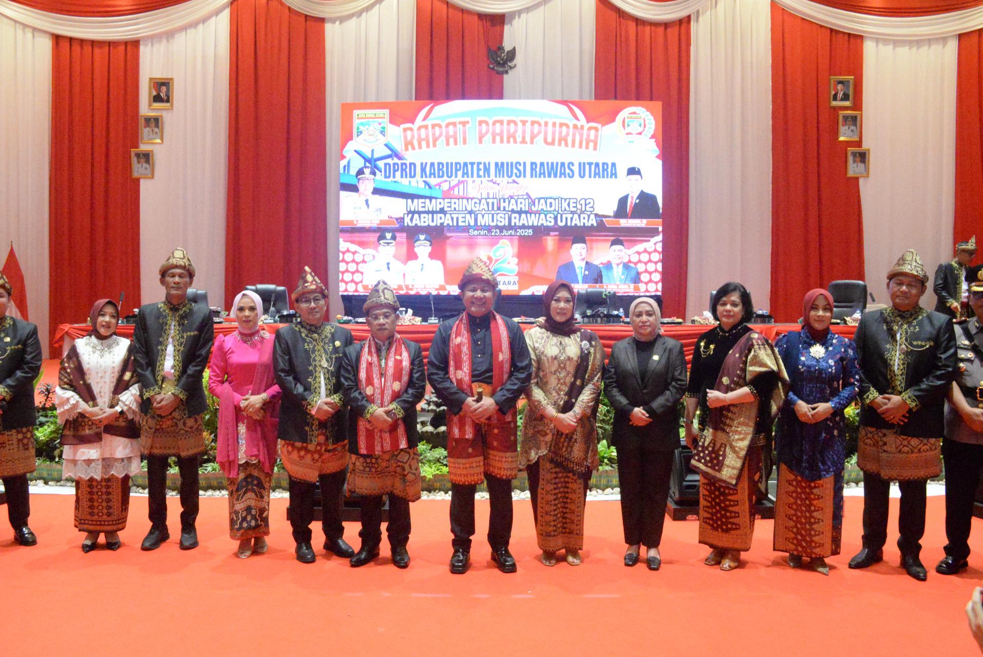 Muratara,KRsumsel.com – Dewan Perwakilan Rakyat Daerah (DPRD) Kabupaten Musi Rawas Utara (Muratara) sukses menggelar Sidang Paripurna dalam rangka memperingati Hari Ulang Tahun (HUT) Muratara yang ke-12, Senin (23/6/2025). Sidang ini dipimpin langsung oleh Ketua DPRD Muratara, H. Devi Ariyanto, dan berlangsung khidmat di Gedung Griya Iluk Muratara.