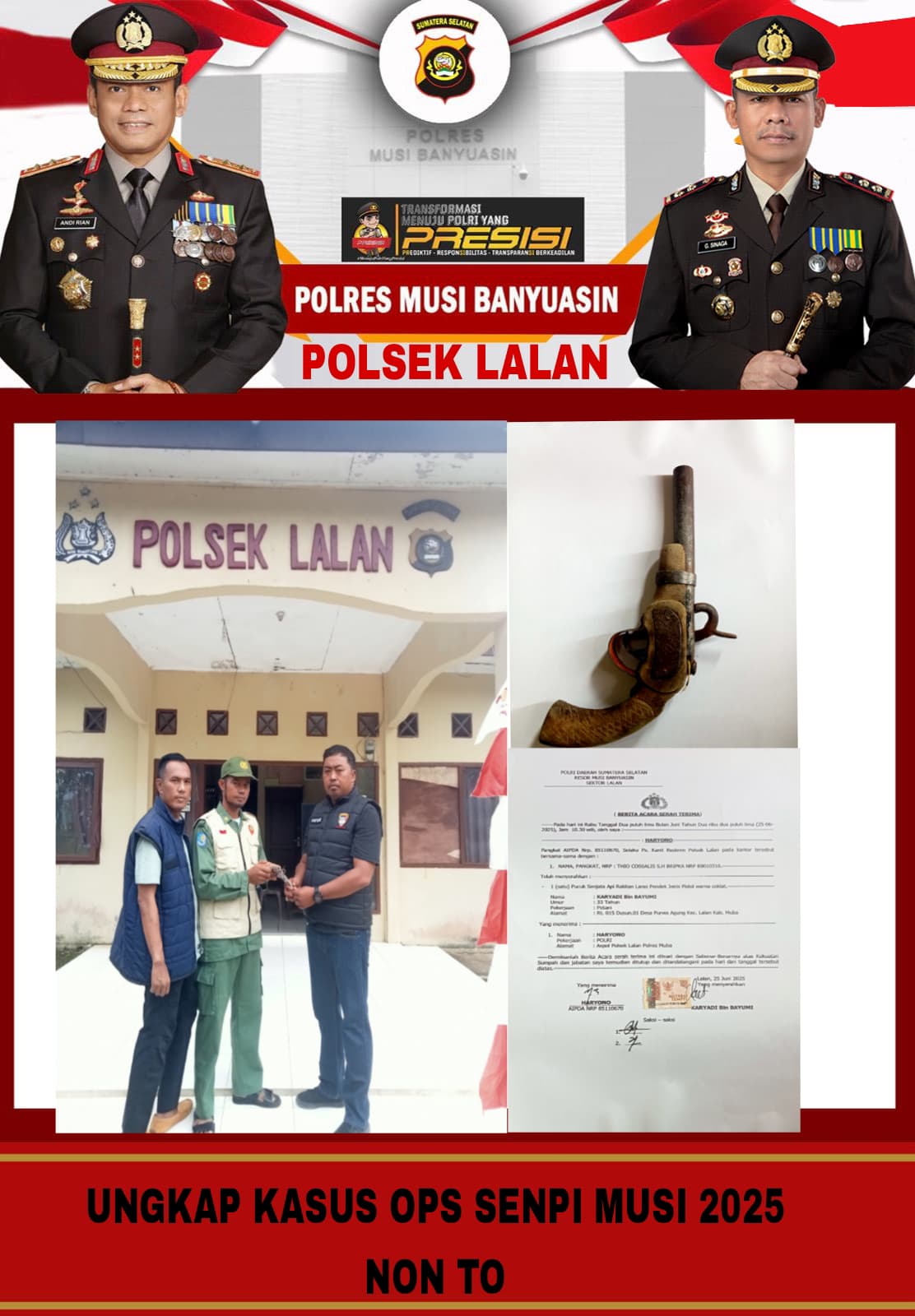 KRSUMSEL.COM, Muba – Dalam pelaksanaan Operasi Senpi Musi Tahun 2025. Polsek Lalan menerima penyerahan senjata api (senpi) rakitan secara sukarela dari warga.