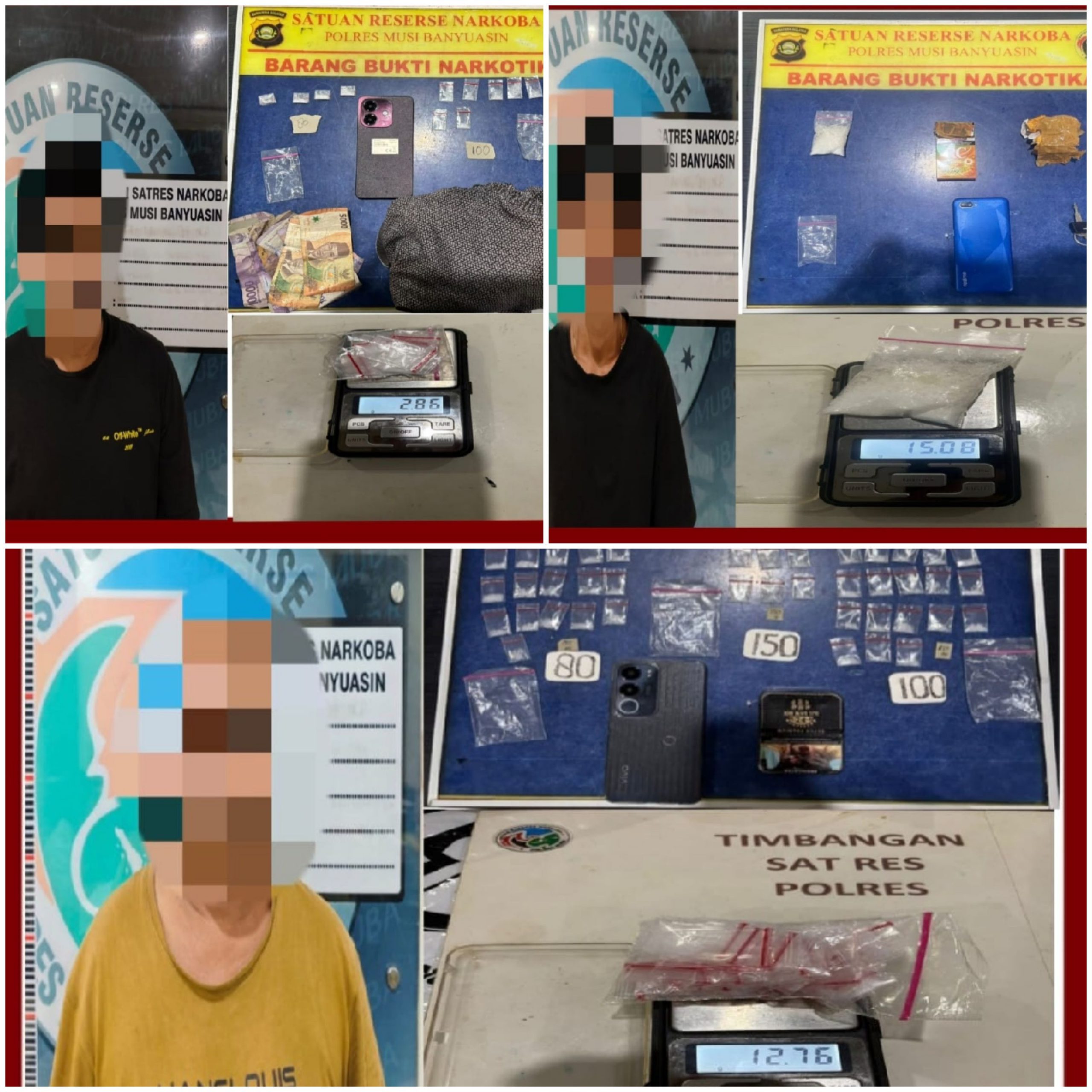 Dimana identitas ketiganya ialah Zulpakar (26) warga Kelurahan Balai Agung, Kecamatan Sekayu, Kabupaten Muba dan Daman Huri (50) warga Kelurahan Serasan Jaya, Kecamatan Sekayu, Kabupaten Muba. Serta Selamat Riadi (29) warga Desa Bangun Harja, Kecamatan Plakat Tinggi, Kabupaten Muba.