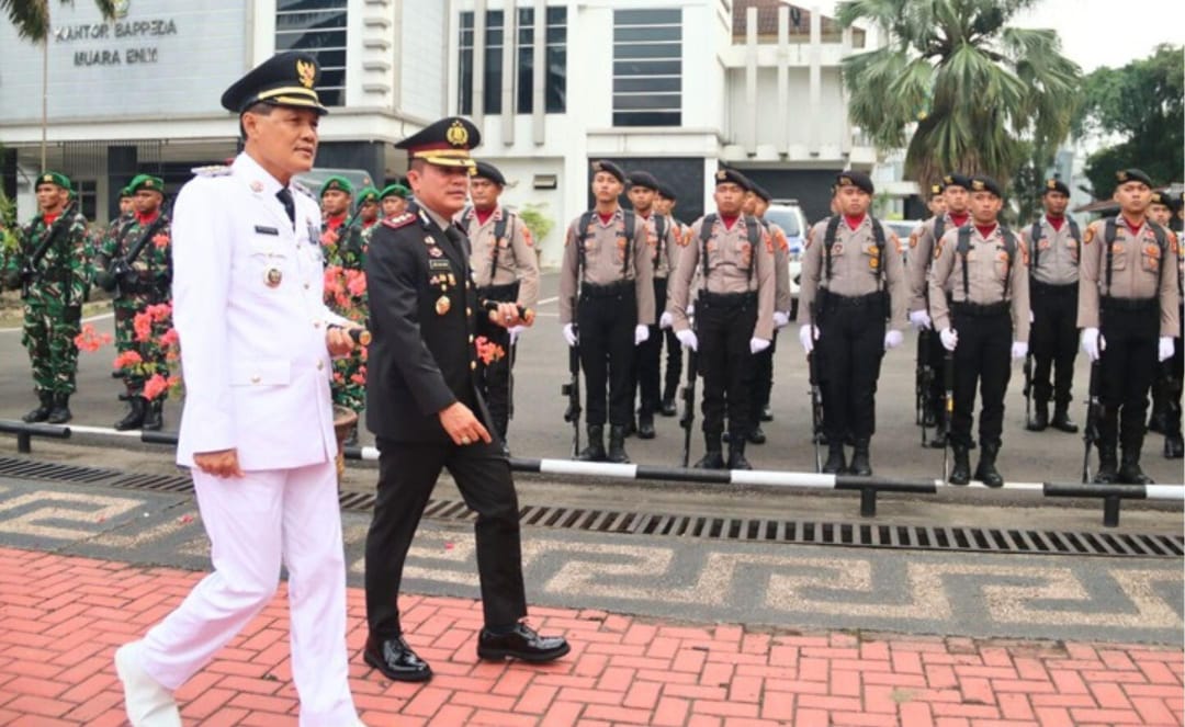Muara Enim, KRSumsel.com – Bupati Muara Enim, H. Edison, S.H., M.Hum., menjadi inspektur upacara pada Peringatan Hari Ulang Tahun (HUT) Bhayangkara Ke-79 @divisihumaspolri yang diikuti seluruh Forkopimda, personel Polres Muara Enim, TNI, serta sejumlah elemen masyarakat di Halaman Kantor Bupati Muara Enim, Selasa (1/7/2025).
