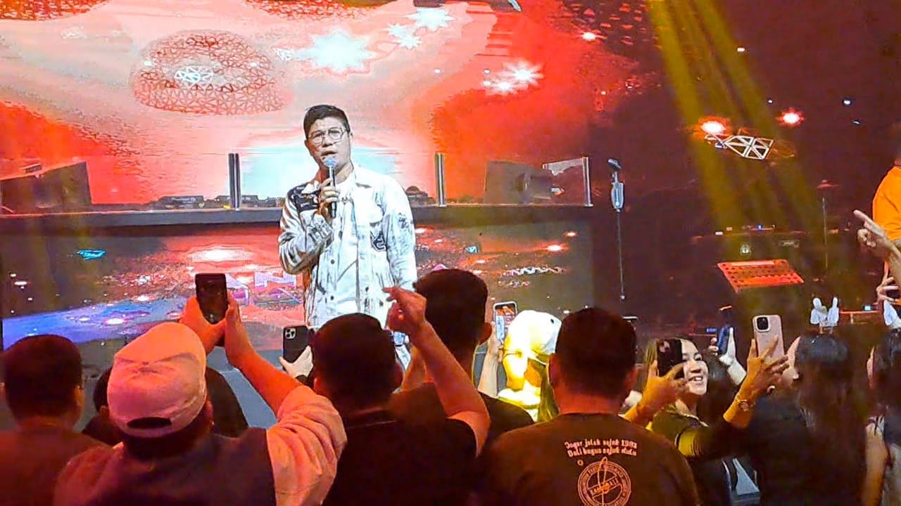 KRSumsel.com, Palembang – Sambutan pengujung theVenus Golden Hall yang berada di Jl. R. Soekamto, Palembang dengan kehadiran dari Andika Mahesa vokalis dari Kangen Band, membuat tempat tersebut penuh dan mengobati rasa kangen pengemarnya dengan kehadiran bintang idola mereka.