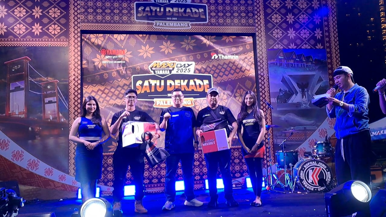 KRSumsel.com, Palembang – Yamaha Thamrin umumkan kesuksesan acara MAXI Day 2025 di Kota Palembang. Acara digelar di Lapangan DPRD Sumsel, yang menjadi puncak perayaan satu dekade hadirnya seri motor MAXI Yamaha di Indonesia yang sekaligus berhasil menyatukan ratusan pengendara dari berbagai komunitas dan daerah dalam semangat kebersamaan.