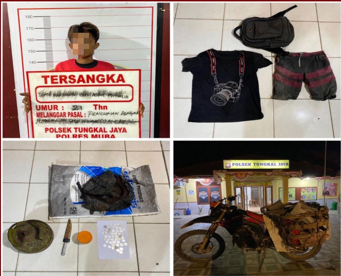 KRSUMSEL.COM, Muba – Unit Reskrim Polsek Tungkal Jaya berhasil menangkap pelaku tindak pidana pencurian dengan pemberatan (curat) yang telah beraksi di wilayah Dusun IV, Desa Peninggalan, Kecamatan Tungkal Jaya, Kabupaten Musi Banyuasin (Muba) pada, Rabu (6/8) sekitar pukul 11:30 WIB.