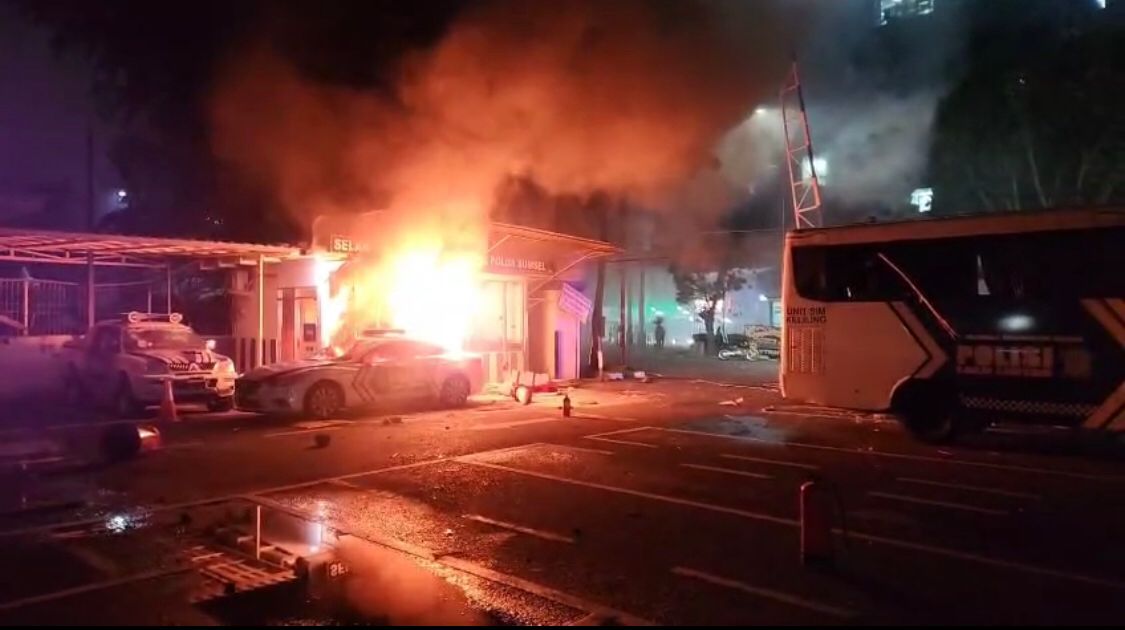 Massa kemudian merusak pagar DPRD Sumsel, menyerang pos polisi, hingga membakar dua pos yang berada di Simpang DPRD Sumsel dan kawasan Samsat Palembang (markas Ditlantas).