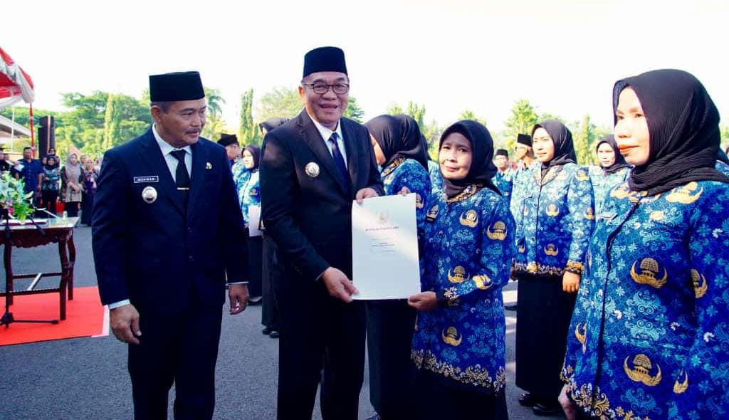 “Untuk secara keseluruhannya berjumlah sebanyak 2.563 orang yang terdiri dari, jabatan fungsional guru sebanyak 332 orang, jabatan fungsional kesehatan 346 orang dan tenaga teknis berjumlah 1.885 orang. Semoga semua yang sudah dilantik mendapatkan banyak keberkahan bekerja sesuai tugas dan fungsinya memberikan pelayanan yang terbaik bagi masyarakat,” tandasnya.(AS)