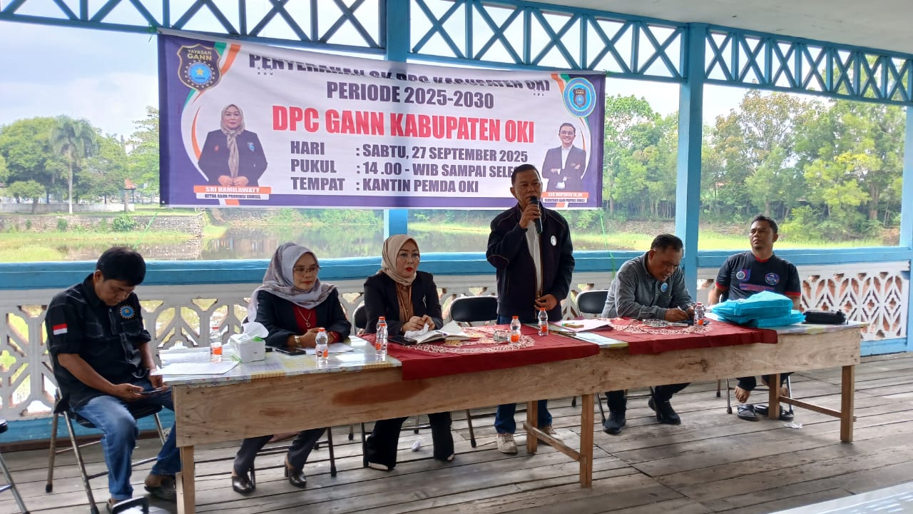 Dewan Pimpinan Daerah (DPD) Yayasan Gugus Antisipasi Narkotika Nusantara (GANN) Provinsi Sumatera Selatan secara resmi menyerahkan Surat Keputusan (SK) kepada pengurus Dewan Pimpinan Cabang (DPC) GANN OKI periode 2025-2030, Sabtu (27/9/2025).