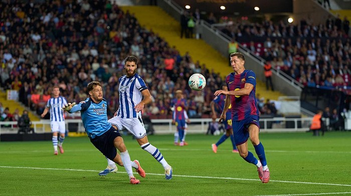 Barcelona menjamu Real Sociedad pada laga lanjutan Liga Spanyol di Estadi Olimpic Lluis Company, Minggu (28/9/2025). El Barca tampil menyerang di awal laga.