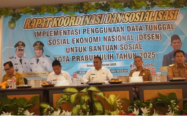 PRABUMULIH,KRSUMSEL.COM -Pemerintah Kota Prabumulih melalui Dinas Sosial menyelenggarakan Rapat Koordinasi dan Sosialisasi Implementasi Penggunaan Data Tunggal Sosial dan Ekonomi Nasional (DTSEN) untuk Bantuan Sosial Tahun 2025.