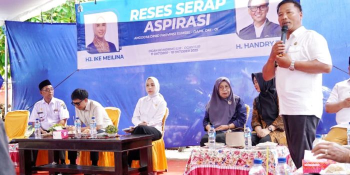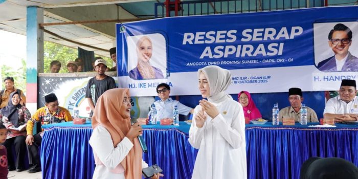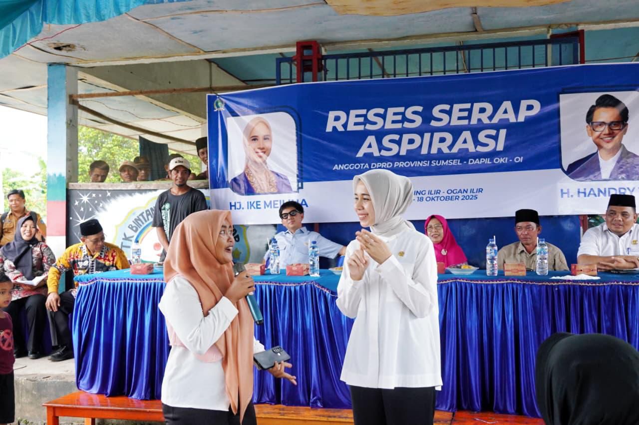 OKI, Krsumsel – Untuk menyerap aspirasi masyarakat, Anggota DPRD Sumsel dapil 3 OKI-OI Ike Meilina, mengadakan reses mengunjungi beberapa desa di Kabupaten Ogan Komering Ilir, mulai Minggu 12 – 17 Oktober 2025.