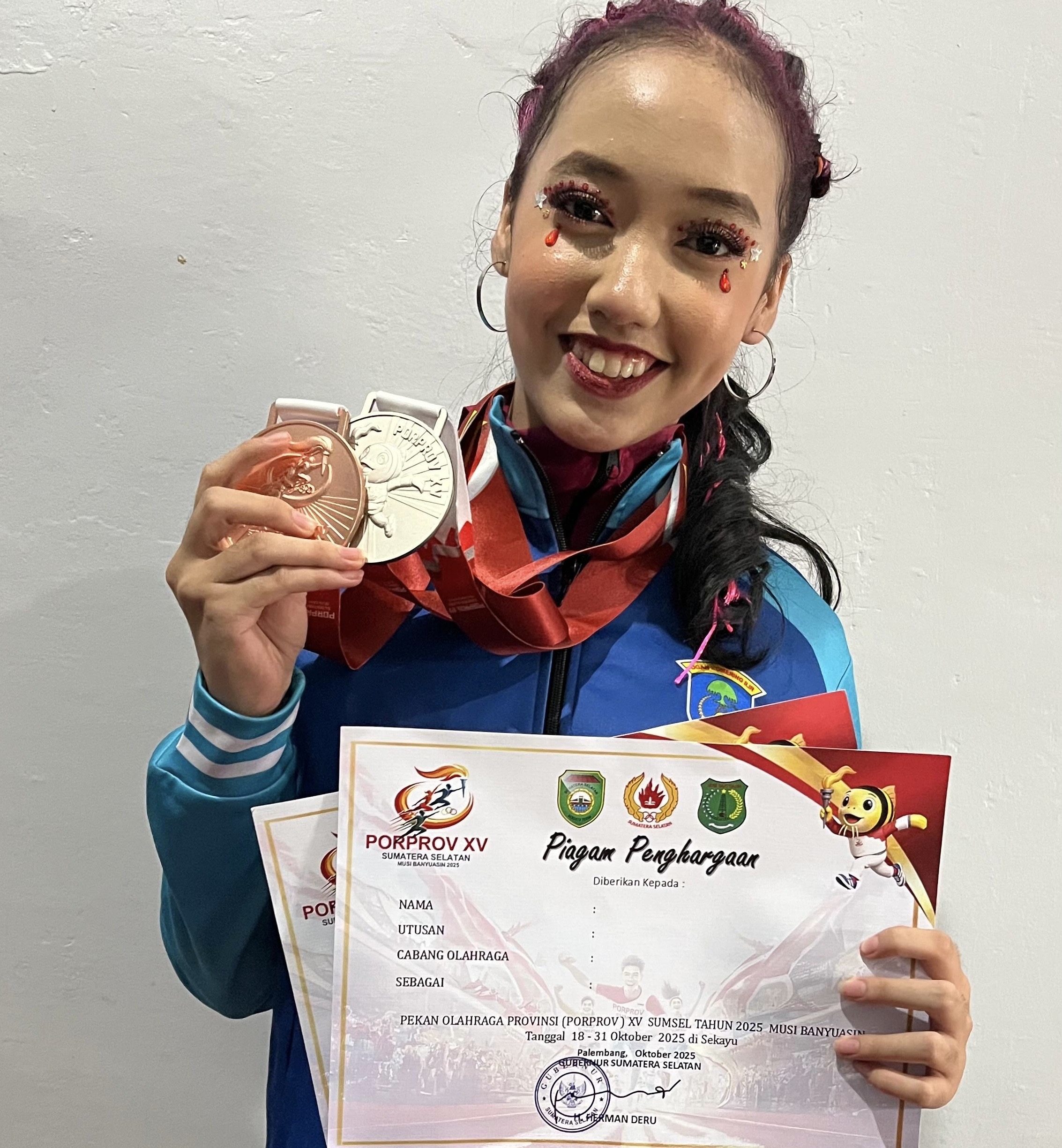 “Alhamdulillah, berkat kegigihan dapat meraih empat medali,” ungkapnya usai penyerahan medali di gedung Dharma Wanita Muba Minggu (19/10/2025).