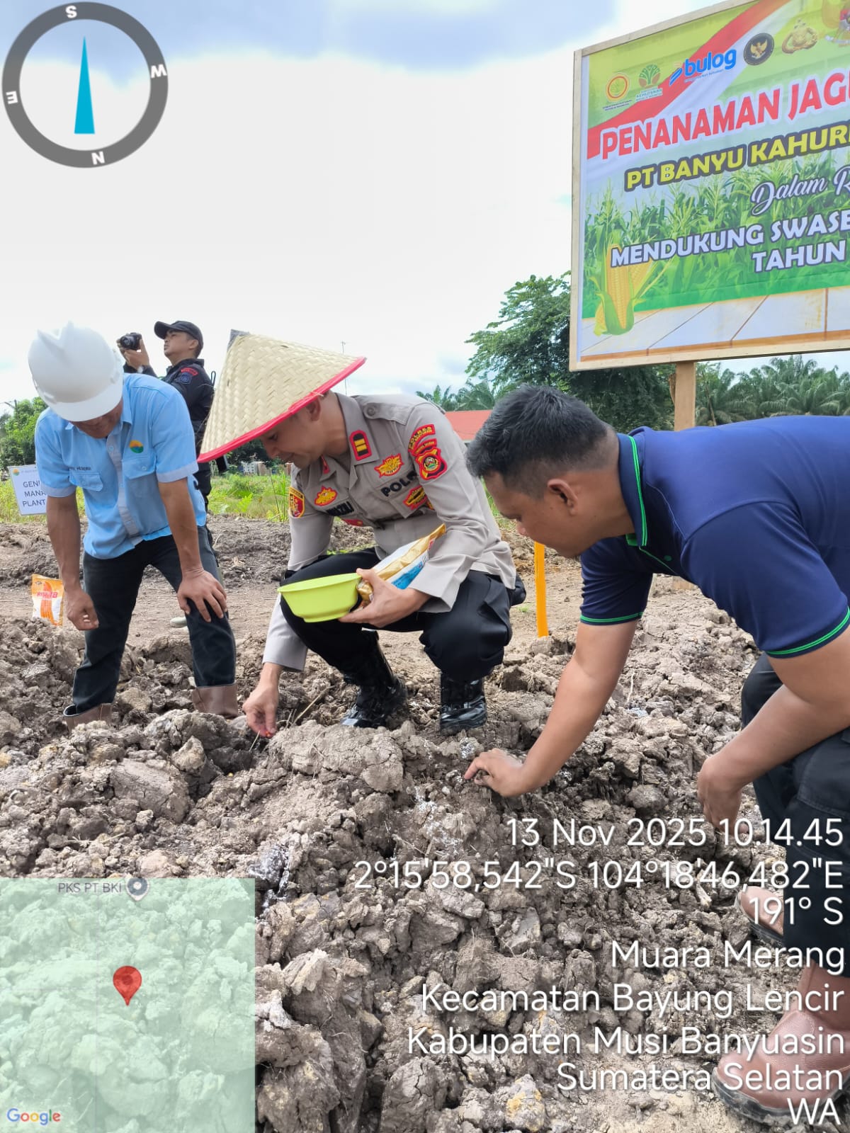 KRSUMSEL.COM, Muba – Guna mendukung program ketahanan pangan nasional. Polsek Lalan yang dipimpin Kapolsek IPTU M. Syazili dan unsur forkopimcam. Serta PT. Banyu Kahuripan Indonesia (BKI) melaksanakan kegiatan penanaman jagung Kuartal IV pada Kamis (13/11) sekitar pukul 10:00 WIB.