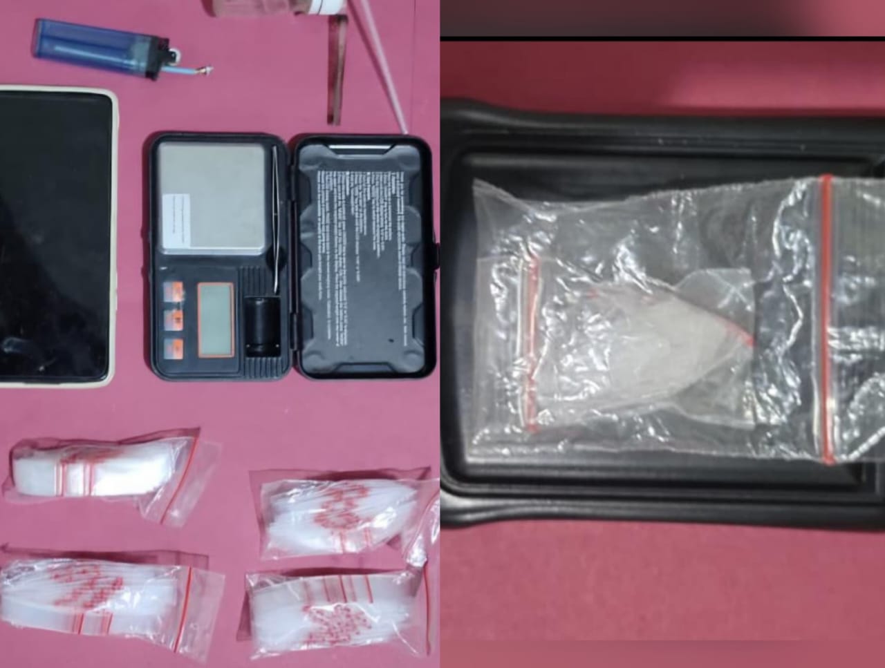 Saat dilakukan penangkapan dan penggeledahan, petugas menemukan sejumlah barang bukti berupa satu plastik klip berisi kristal putih yang diduga narkotika jenis sabu dengan berat 3,11 gram bruto, satu unit timbangan digital warna hitam, empat ball plastik klip bening, serta satu set alat hisap sabu (bong). Selain itu, hasil tes urine terhadap tersangka menunjukkan hasil positif (+) narkotika.
