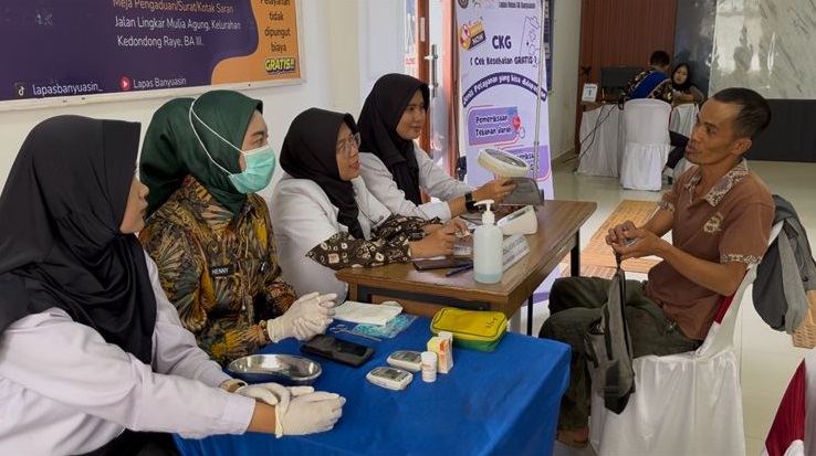 Pemeriksaan kesehatan dilakukan oleh tim medis Lapas Kelas IIA Banyuasin yang terdiri dari dokter, perawat, serta CPNS. Layanan yang diberikan meliputi konsultasi dokter, pengukuran tinggi dan berat badan, pemeriksaan status gizi, pengecekan tekanan darah, gula darah, serta asam urat.