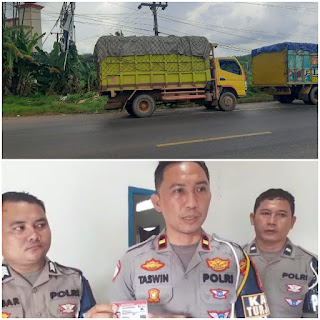 Kepala Unit (Kanit)Pengaturan Penjagaan ,Pengawalan dan Patroli (Turjawali) Satlantas Polres Banyuasin IPDA Taswin Noviar SH menjelaskan, pengemudi truk yang bermuatan buah sawit di periksa Satu persatu oleh Anggota Polisi Lalulintas hingga akhirnya di temukan salah satu pemgemudi truk Inisial HS, menunjukan SIM B1 UmumPalsu saat di periksa polisi.