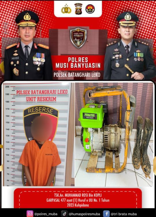 Usai dirinya ditangkap Unit Reskrim Polsek Batang Hari Leko. Karena telah melakukan pencurian satu unit genset pada, Senin (2/2) di wilayah Dusun VI, Desa Pangkalan Bulian, Kecamatan Batang Hari Leko.