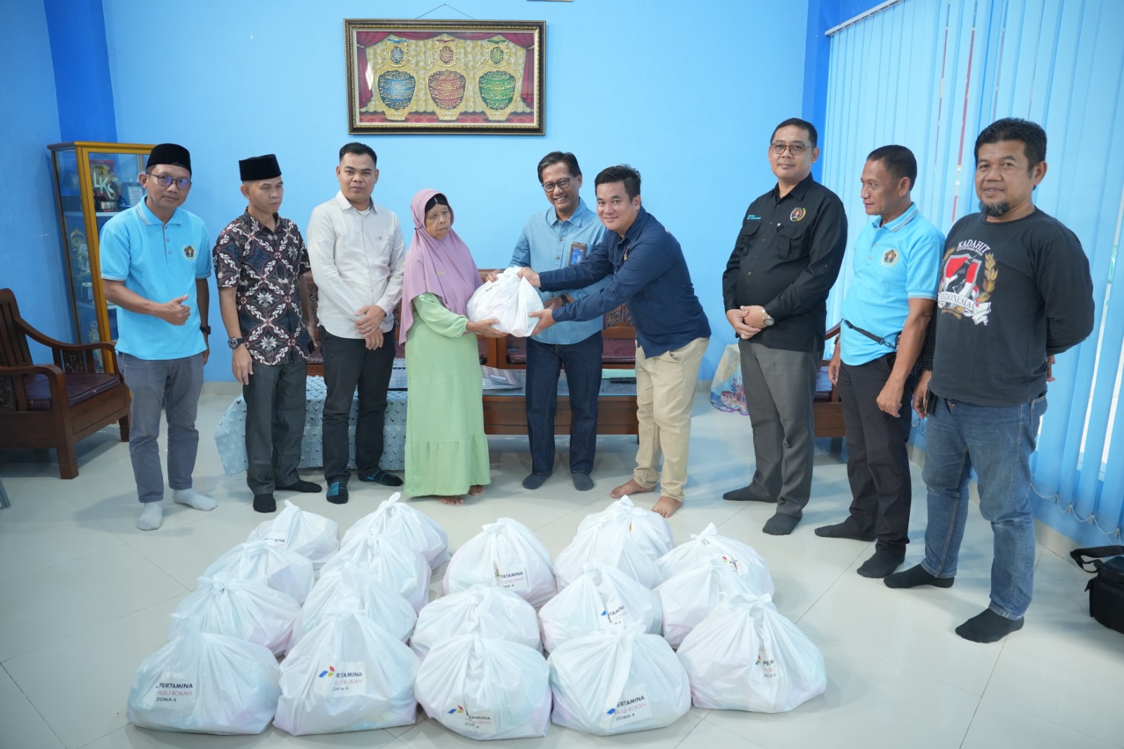 Di halaman Panti Asuhan Riyadhul Kholisin, suasana hangat terasa sejak pagi. Anak-anak menyambut rombongan dengan senyuman, sementara para pengurus panti menyiapkan tempat sederhana untuk penyerahan bantuan. Paket sembako berisi beras, minyak goreng, gula, dan kebutuhan pokok lainnya diserahkan langsung, disusul santunan untuk 50 anak yatim dan warga kurang mampu.
