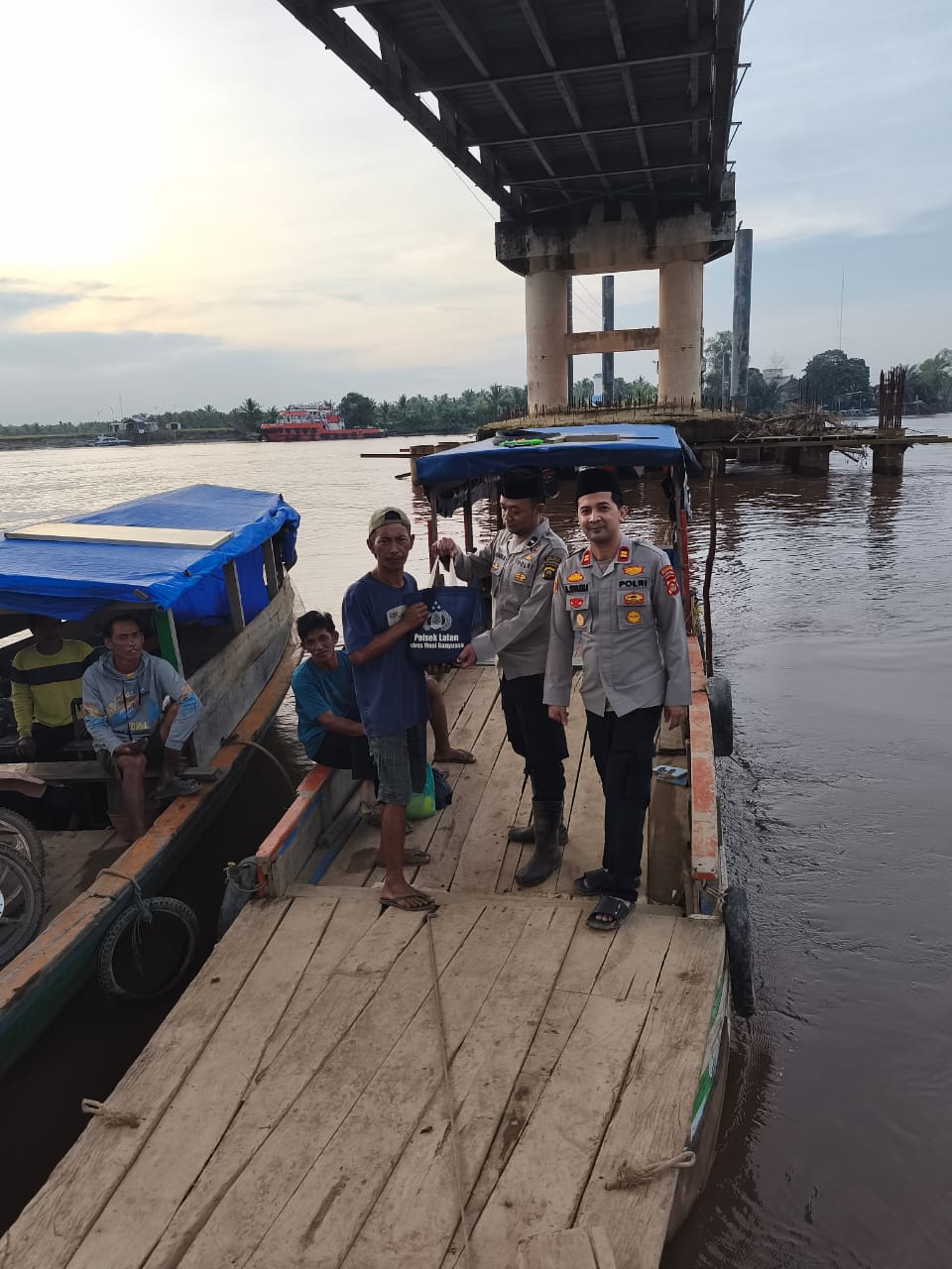 Terbaru, pucuk pimpinan Polsek Lalan ini langsung mendatangi para sopir dan kenek ketek yang berada di perairan sungai di Desa Galih Sari, Kecamatan Lalan, Kabupaten Musi Banyuasin (Muba) pada, Jumat (27/2) pagi. Kedatangannya dengan membagikan belasan paket sembako.