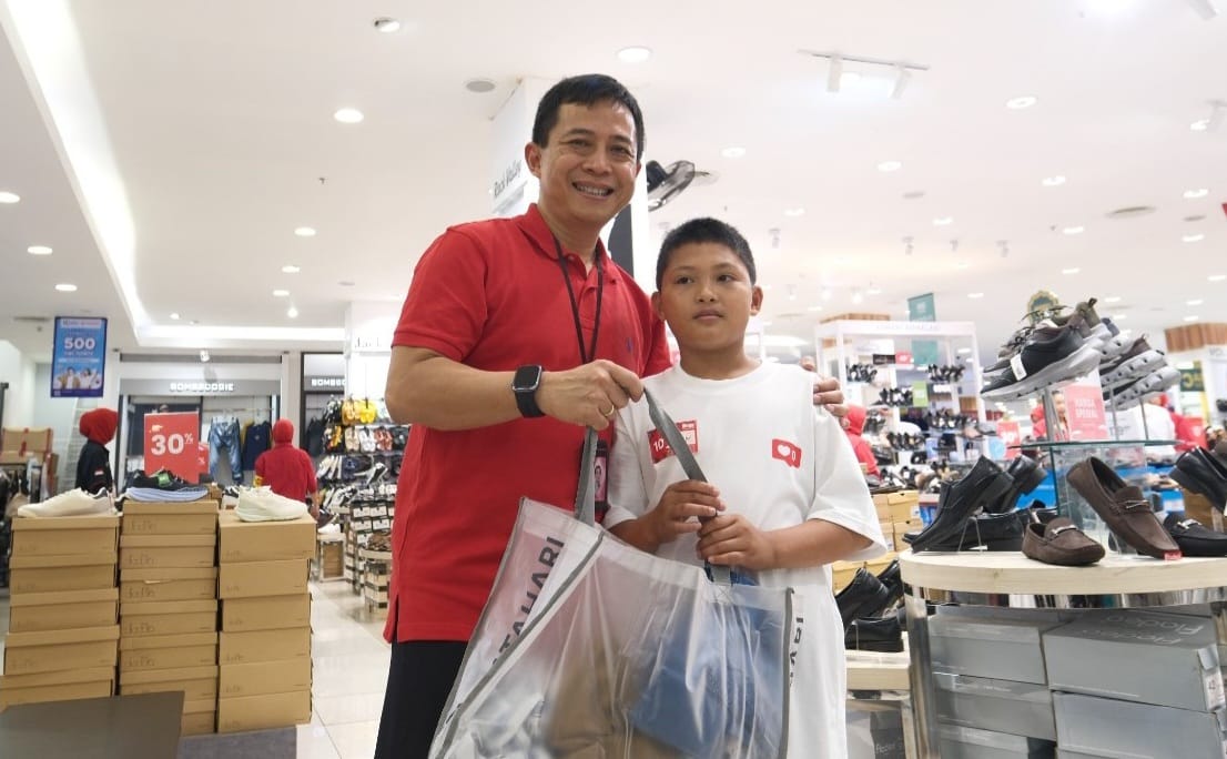 Kebahagiaan terpancar saat anak-anak dari Panti Asuhan Masiun dan Panti Asuhan Az Zikri berbelanja baju baru bersama manajemen Telkomsel di Matahari PSx (2/3).