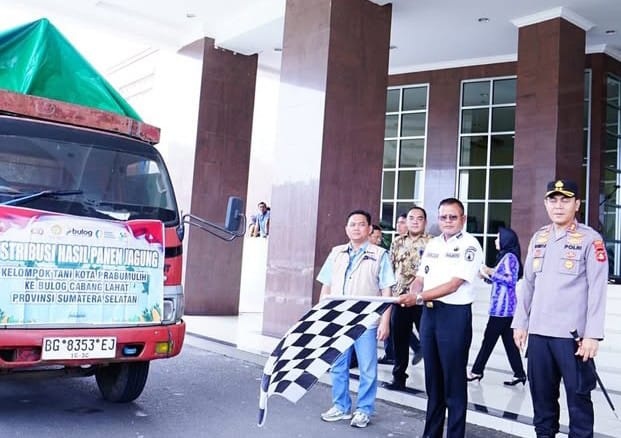 Wali Kota Prabumulih, H. Arlan, secara resmi melepas pengiriman 3 ton jagung hasil panen petani lokal menuju gudang Bulog Cabang Lahat, Jumat (06/03/2026).