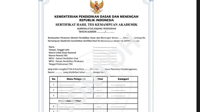 Materi yang diujikan dalam TKA meliputi Matematika untuk mengukur kemampuan numerasi serta Bahasa Indonesia untuk penguatan literasi siswa.