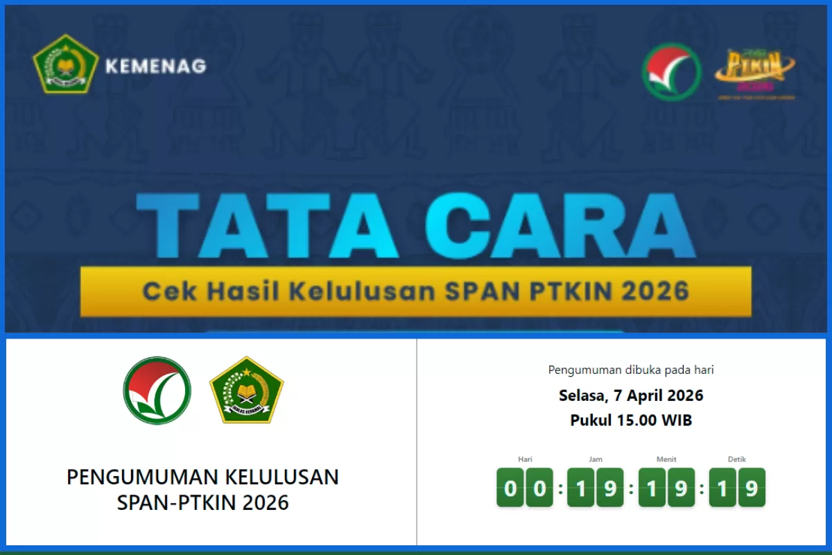Jakarta, Krsumsel.com – Panitia Nasional Penerimaan Mahasiswa Baru Perguruan Tinggi Keagamaan Islam Negeri (PMB-PTKIN) akan mengumumkan hasil Seleksi Prestasi Akademik Nasional (SPAN) 2026 secara serentak pada hari ini, Selasa (7/4) pukul 15.00 WIB.