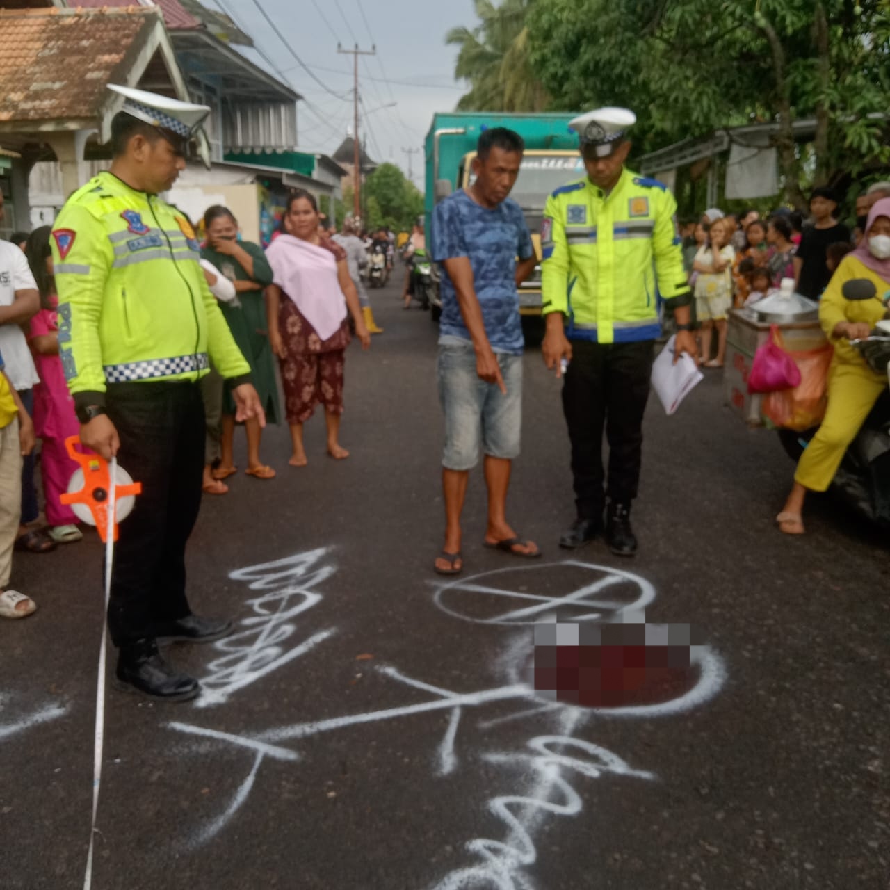 Setibanya di lokasi, korban berusaha mendahului kendaraan truk yang berada di depannya. Namun, dari arah berlawanan muncul kendaraan lain yang tidak diketahui identitasnya, sehingga korban melakukan pengereman mendadak. Akibatnya, sepeda motor kehilangan kendali dan terjatuh.