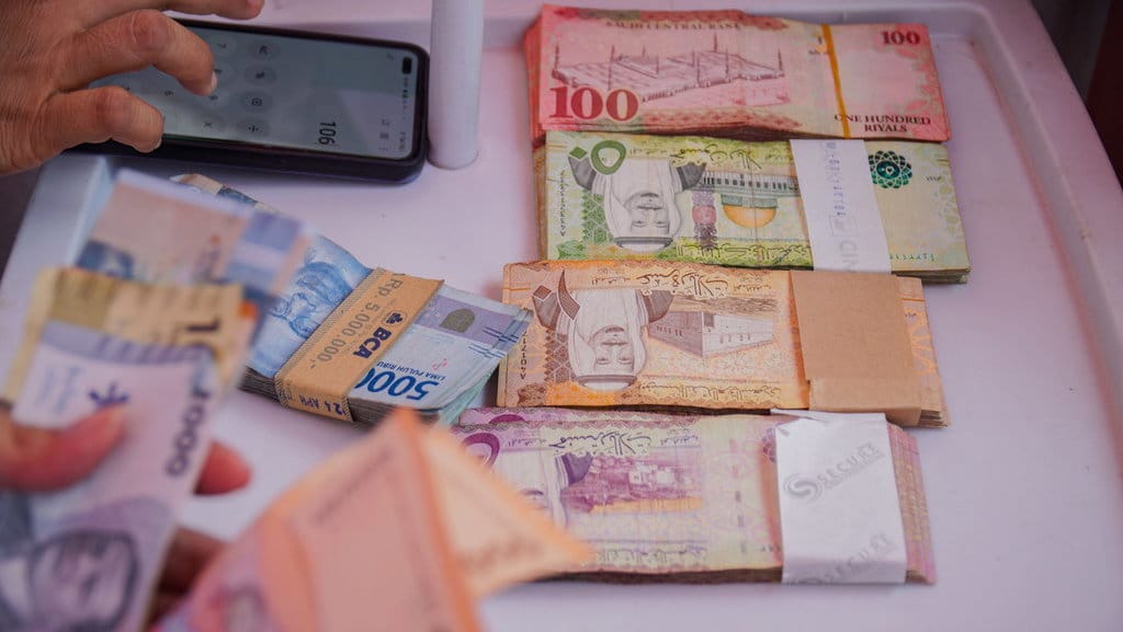 Penukaran mata uang Riyal Arab Saudi ini adalah salah satu fasilitas layanan eksekutif bagi jamaah calon haji nasabah Bank Sumut di Longe Hajj 2026 Bank Sumut Syariah di Asrama Haji Medan.