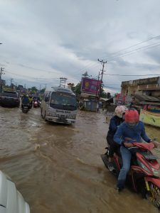 Ruas Jalan Tergenang Air, Satlantas Polres Banyuasin Himbau Pengendara Ekstra Hati-Hati